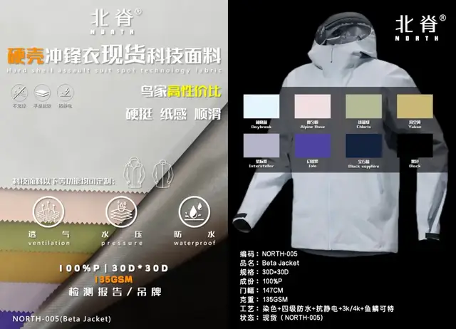 紫晶花坚持科技创新是第一生产力,累计投入5000万元用于可持续功能性面料的研发,其研发的冲锋衣无极面料-超轻量弹力系列突破传统冲锋衣面料厚重与束缚感,采用极致轻量材料成品克重60G、同时达到10K/10K暴雨级户外防护,性能比肩国际大牌面料,透气透湿指标远超国家标准2倍。