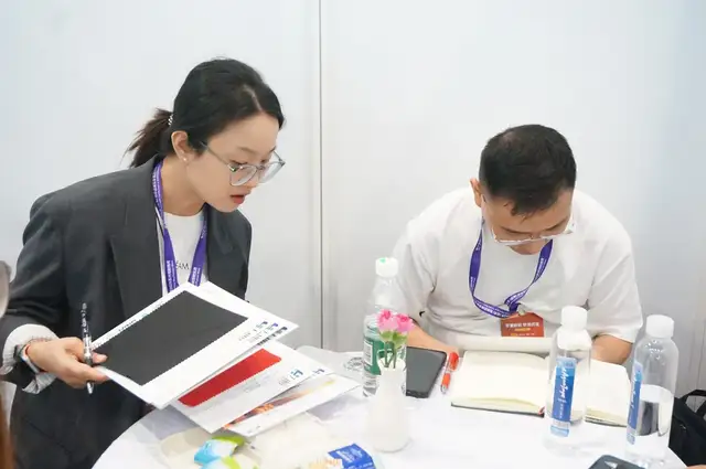 “我们主要做企事业单位的工作服,包括防静电、阻燃、防病毒的特殊防护工装,目前以男装为主。这次主要想找的供应商有两个方向,一个是能够提供非常齐全的工装面料的厂家,方便我们匹配,一个是要有比较差异化产品的厂家。目前已经找到了符合我们需求的。”江苏三挺服饰科技有限公司董事长沈民军、运营总监舒时嘉也详细向我们阐述了他们的选择标准,并强调,“这种行业推动的活动方式很好,大家五湖四海的,单独找东西很难,但通过对接会,主办方筛选、过滤后,进来的都是比较精准、互相匹配的企业。而除了供需对接,也方便了同行之间交流,资源已经整合到一块儿了,未来碰撞出合作的可能性很大。”