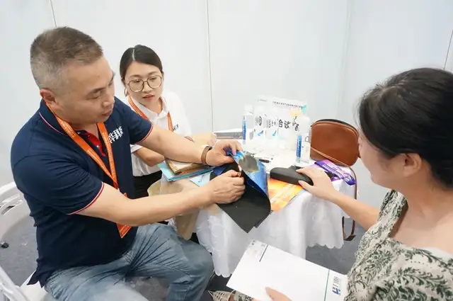 广东富绅服饰有限公司采购总监陈爱兰则是第一次参加对接会。有着三十多年发展历史、主做男士正装、商务装的富绅,之前合作的盛泽面料供应商主要提供西装里布,这次目的是想找适合男士、女士的易打理、可机洗、高弹力复合面料,“以前我们主做男装,女装面料供应链比较缺乏,这次成功对接到了符合我需求的弹力面料厂家,还有最快能当天出货的印花厂家。也都约好了要去厂家再看看,确保色牢度、缩水率、耐磨性等都达标,这也是我爱到面料源头地采购的原因。”