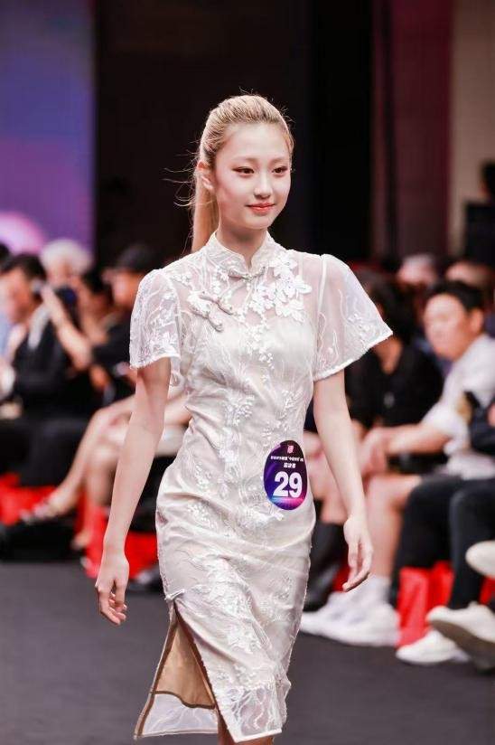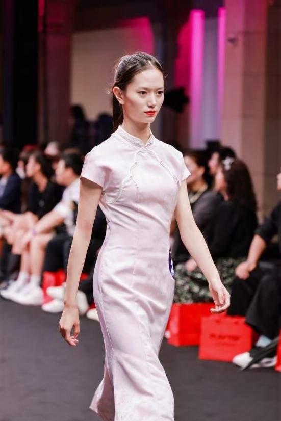 三、“压轴·闪耀”新中式旗袍: 在最为考验气质与可塑性的压轴环节,选手们身穿槿爷东方新中式旗袍,化身超模,演绎极具艺术感的新中式旗袍。她们用眼神与肢体语言讲述故事,将现场气氛推向高潮,展现了未来国际超模的强大气场与可塑性。