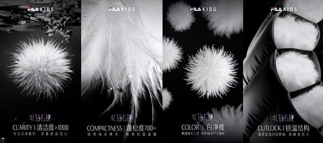 本季FILA KIDS以”每个孩子都是未经雕琢的钻石”为灵感,将钻石的珍贵与纯净转化为冬日的温度语言。孩子的成长,是光芒渐现的过程,而FILA KIDS则希望通过科技与美学的雕琢,让每一个孩子的闪耀被温柔笼罩。从原料选绒到设计打磨,每一克钻石绒都凝结了FILA KIDS对高品质与美学的执着。全新升级的”4C钻石绒科技”体系,灵感融合钻石分级标准——蓬松度(Compactness)、白净度(Color)、清洁度(Clarity)与锁温结构(Cut Lock)。FILA KIDS将钻石的四大标准转化为羽绒科技语言,融合高科技、高标准与高审美,为孩子带来可视、可触、可感的恒久温暖。以简洁廓形融入时尚线条,锁温同时保持轻盈不坍塌,将”专业温度”化为可以触摸的品质感,让孩子在纯净的冰雪世界中,感受大自然的壮丽与宁静,激发他们对未知的好奇与探索的勇气。
