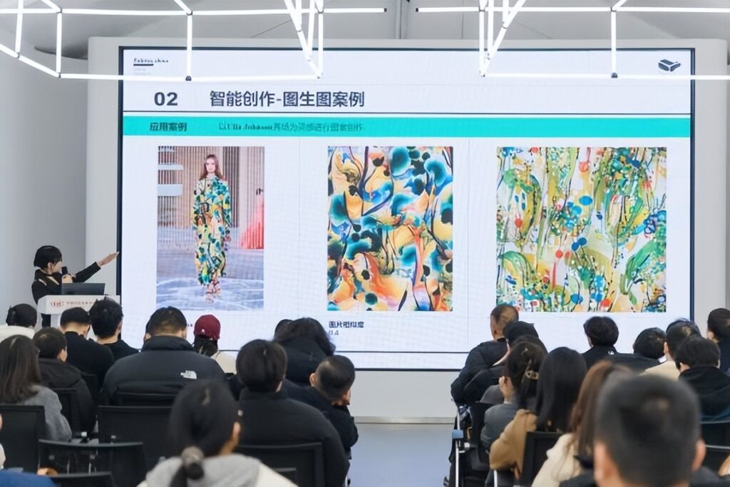 由中国纺织信息中心浙江分中心、绍兴市柯桥区纺织绣花商会联合主办的培训班立足于人工智能与生成式技术(AIGC),结合艺术审美与算法逻辑,探索绣花图案从灵感采集、风格迁移、智能生成到风格优化的全流程数字化路径。本次活动在浙江分中心举办,共有来自归零纺织、慕理纺织、君博纺织、山源绣品、秀芭纺织等绣花商会会员企业的60余位代表参与。
