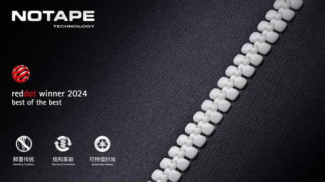 首先是设计层面。 对于轻薄、贴身、垂坠感强的服装品类,布带和缝线往往导致凸起、僵硬、起拱和褶皱,影响面料的流动感和成衣完整性。正如红点奖对 NOTAPE™ 的评语所言:传统拉链的织物边缘容易在轻盈服装上形成鼓包和起皱,而去除织物边后,服装表面能获得更完整的视觉与结构表现。